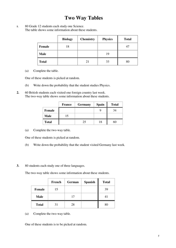 Gcse 9 1 Two Way Tables Teaching Resources