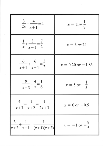 Equations With Algebraic Fractions Worksheet With Solutions A