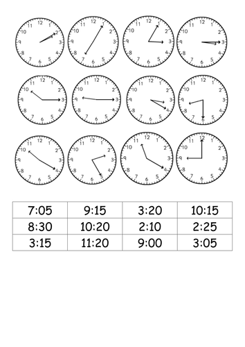 Match Analogue Clocks To 12 Hour Digital Times Teaching Resources
