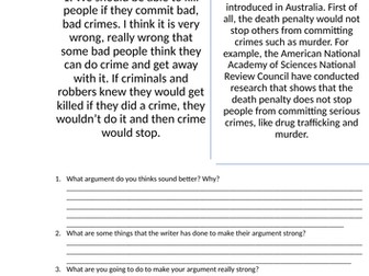 Argumentative Essay Writing Sample Analysis Worksheet Activity