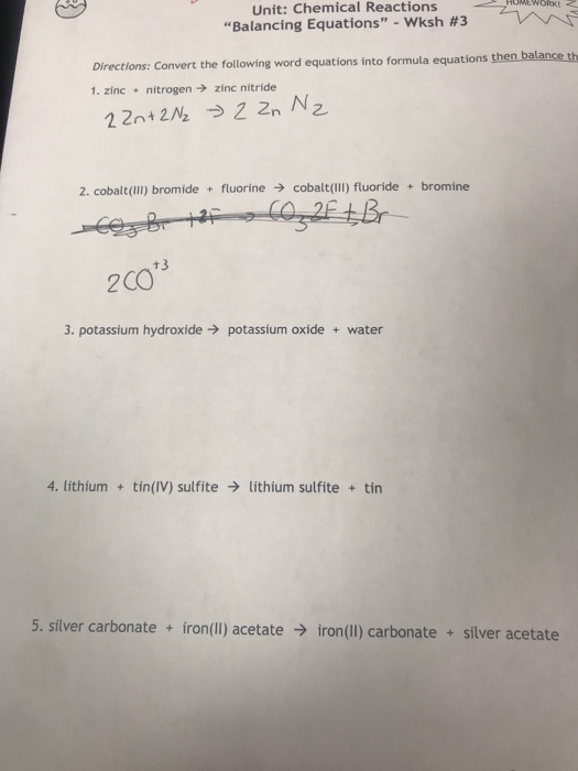 Solved Worksheet 4 Continued Equation Writing And Balan