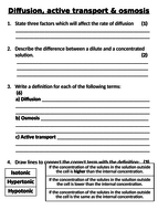 Gcse Biology Diffusion Osmosis And Active Transport Worksheet