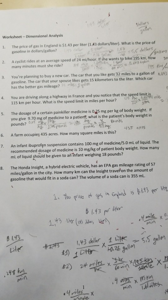 Solved Worksheet Dimensional Analysis 1 The Price Of Gas