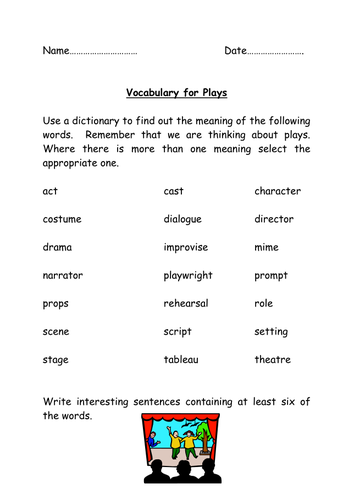 Drama Vocabulary Worksheets Pdf